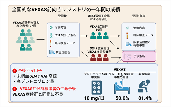 VEXAS症候群の予後予測因子を全国前向き研究で同定 ~末梢血UBA1変異アレル頻度が不良転帰を予測~