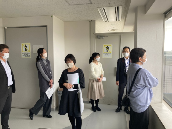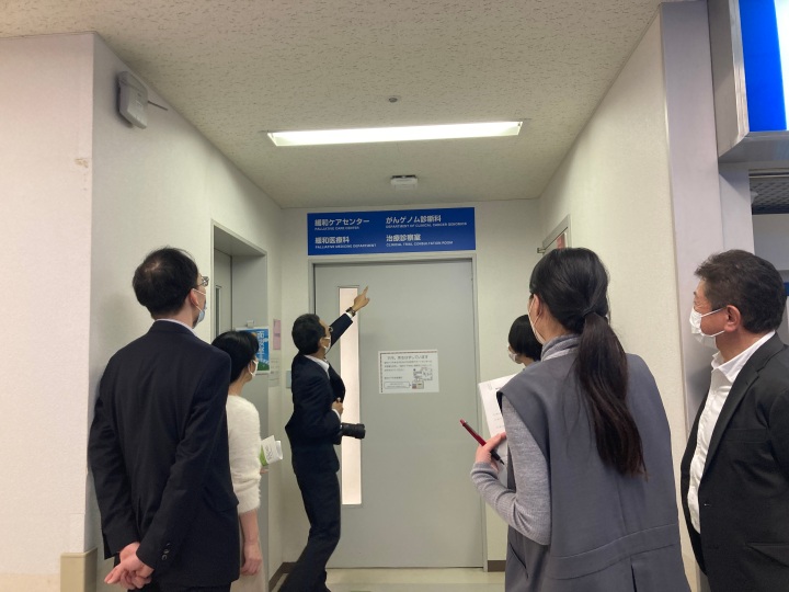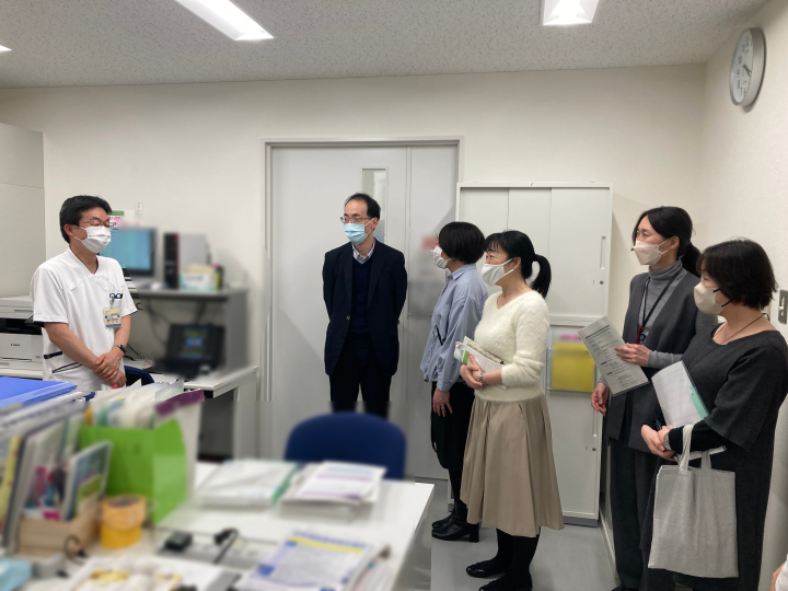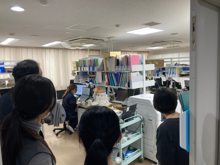 参加者が3チームに分かれ、それぞれ、院内CRC執務室及びSDV室、臨床試験管理室事務執務室、SMO執務室、外来治験ブース、治験薬管理室、次世代臨床研究センター執務室を順番に見学しました。自施設以外の施設を見学できる貴重な機会であり、それぞれの自施設との違いについて参加者どうし活発に情報交換がなされていました。