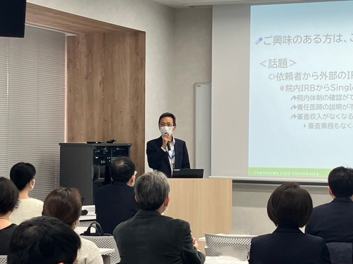 横浜臨床研究ネットワーク協定病院を対象にIRB提出資料の取り扱いと施設ごとの差異をアンケート調査し、2026年2月20日に開催された日本臨床試験学会 第17回学術集会総会で口演を行いました。その時の様子やフロアとのディスカッションについて共同演者でもある参加者の皆様に報告しました。また本会終了後のネットワーキングを利用し、今後本格化するSingle IRBについての意見交換が提案されました。