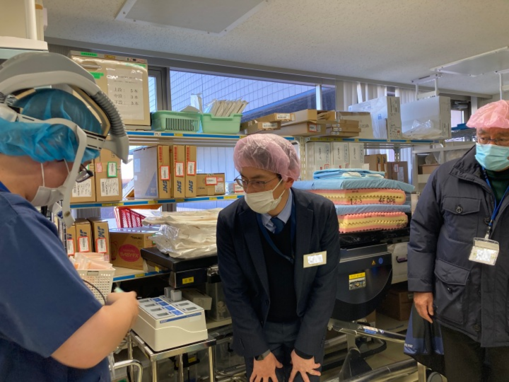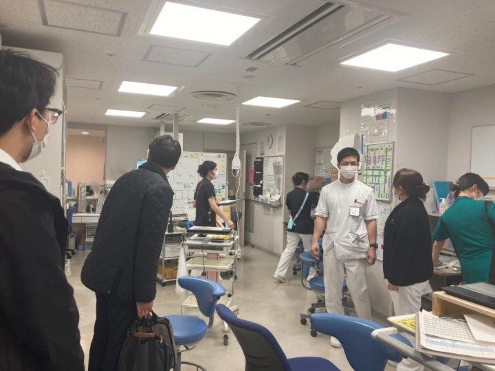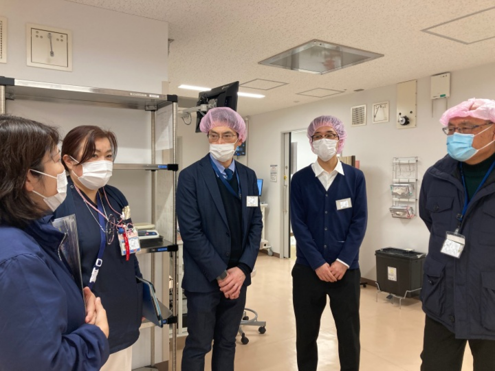 院内の見学終了後に看護師長3名、医師1名と一緒に現場の課題について振り返り、改めて医療現場での困り事を共有しました。さらには課題解決の方向について熱心に議論が交わされました。
