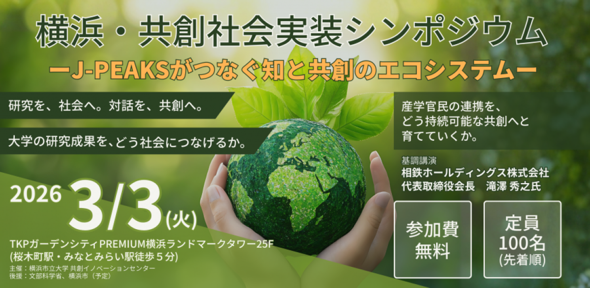 共創イノベーションセンター シンポジウムを開催します横浜・共創社会実装シンポジウム 一J-PEAKSがつなぐ知と共創のエコシステム一