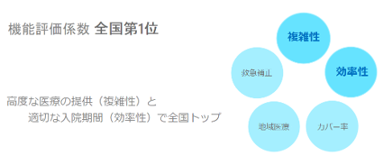 また、これまで一体として評価されていた「機能評価係数Ⅱ」と「救急補正係数」を合わせた評価でも、第1位となっています。