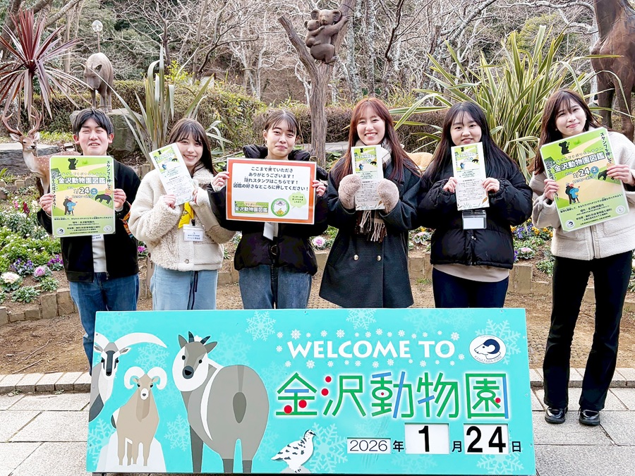 藤﨑ゼミでは2023年から金沢自然公園との共同研究を進めています。今回の取り組みでは、希少動物に焦点を当て、金沢動物園が持つ教育的価値を来園者に伝えることで、動物園の魅力向上につなげたいと考え、「金沢動物園図鑑」を企画・実施しました。活動期間は2025年7月から2026年2月までの約8か月です。
