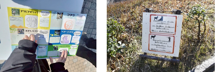また、スタンプだけではなく、金沢動物園の課題である「移動距離の長さ」を学習機会として活用するため、園内の道沿いに掲示版を設置しました。掲示版には動物の生態や行動の特徴、絶滅危惧種としての背景などを記載し、移動時間も学びの時間として楽しめるように工夫しました。