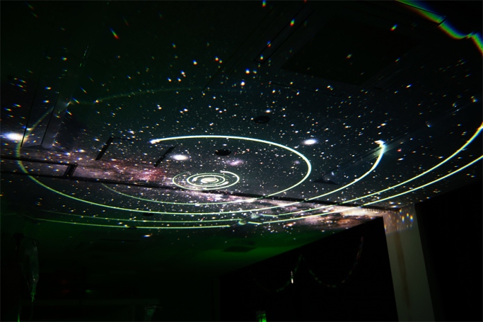 13時という昼間の時間帯から始まったイベントでは、部屋の扉や窓に暗幕を貼り、なるべく光を最小限にした状態で、院内の天井に星空を投影して行われました。