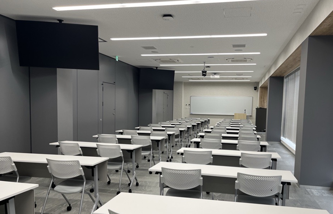 オープンイノベーションラボ棟(OIL棟)1階には、外部の方も利用できるセミナールームを備えています。 研究者、企業、行政が集い、新たな価値を生み出す場として、地域に開かれたイノベーション拠点を目指しています。