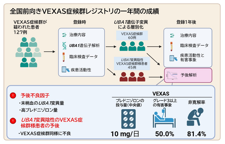 VEXAS症候群の予後予測因子を全国前向き研究で同定 ~末梢血UBA1変異アレル頻度が不良転帰を予測~